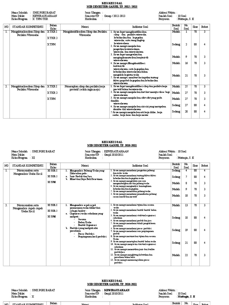 Soal Kewirausahaan Kwu Kelas 12 Sma Ma Dan Kunci Jawaban from rumusbilangan.com Kisi kisi pts pkn kelas 10. Soal dan jawaban pat prakarya dan kewirausahaan kelas x sma/ma semester 2 tahun pelajaran 2020/2021. Pilhan ganda alokasi waktu : Kisi kisi pjok terdiri dari pengetahuan dan keterampilan dibentuk sesuai dengan kompetensi dasar tematik kelas 3 revisi 2018. Cakupan penilaian meliputi seluruh indikator yang merepresentasikan semua kd pada semester tersebut. Sebagai contoh, berikut contoh soalnya: Kisi kisi soal perguruan tinggi swasta pjok kelas 3. Ebook 9.membuat sampul 10.melengkapi metadata 11.menampilkan file ebook memahami konsep kewargaan digital 1.menjelaskan konsep kewargaan digital 2.menjelaskan konsep internet security 3.menjelaskan jenis virus komputer dan pencegahannya 4.menjelaskan simbol creative commons.